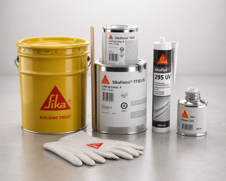 | Installation & bonding | Engineered Sika-on-Sika bonding system | Adhesive dependent (installer-based) | Pressure-sensitive adhesive |